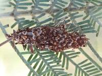 These Caterpillars construct a case around themselves using silk, so are commonly called Bag Worms or Case Moths. Most camouflage it with pieces of material from their environment, often characteristically chosen and arranged by that species. They have an anterior hole in the case through which the head and thorax protrude while feeding. They have a posterior hole for excretion. They pupate within their case, generally after securing the front to a twig securely with silk, so that it swings freely. In some species the adult female is wingless, and remains in her case for the male to visit her. She actually lays her eggs in the case.
