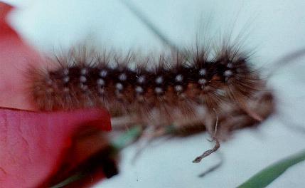 This Caterpillar was rusty brown and hairy with white spots on each segment. It grew to a length of 3 cms.