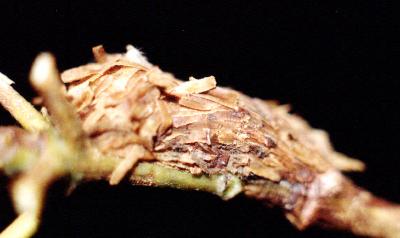 It pupated in a cocoon covered in debris on a twig.