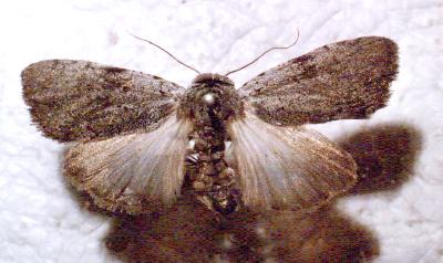 The adult moth was grey with some indistinct dark patches.