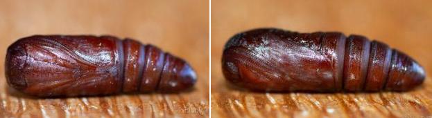 The pupa was brown with a scupltured surface matching the developing organs inside.