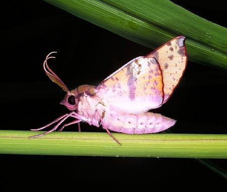 ![]() 9: Probably Cruria synopla, AGARISTINAE | ![]() 10: Probably: larva of Anthela ocellata, ANTHELIDAE | ![]() 11: Belenois java, PIERIDAE | ![]() 12: Passion Vine Hopper (not a moth), Scolypopa australis (Walker), Ricaniidae, HOMOPTERA length: about 1.5 cms. |