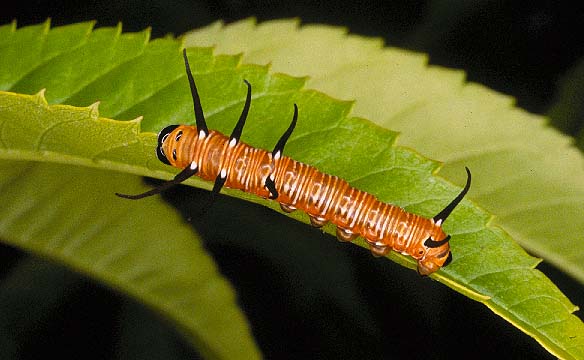 ![]() 17 : undetermined larva probably ARCTIINAE, with parasitic wasp cocoons, from Bayldon, NSW | ![]() 18: Eudocima salaminia CALPINAE, from Bayldon, NSW | ![]() 19: Oxycanus species attracted to lighted window, New England National Park, NSW | ![]() 20: larva of Euploea corinna NYMPHALIDAE |