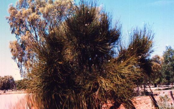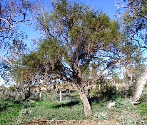 | Apophyllun anomalum tree south of Brewarrina, with Belenois java pupal case on it. |