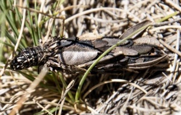 This Caterpillar covers its case with convex pieces of leaf. The case in the photo had a length of about 4 cms.