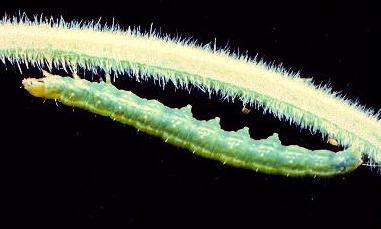 This Caterpillar is initially green with a pale brown head capsule. Later instars develop a green head, and a pair of white lines along the back.